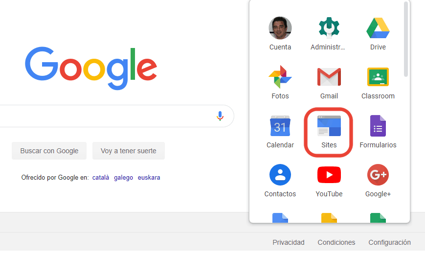 Si pulsásemos el botòn rojo "CREAR" que se encuentra en la versión clásica, aparecería un menú con dos opciones, "en la versión clásica de Sites" o "enla versión nueva de Sites". En ese caso habría que elegir la versión nueva. de esta manera crearemos la primera página de la web, también conocida como página Principal o Home. Nuestra web puede tener una sola página donde vamos añadiendo todo el contenido o estar formada por varias páginas en las que organizamos los contenidos a nuestro criterio. Si tenemos poco contenido, sería mejor en una sola página, pero si hay que añadir muchas cosas, mejor crear varias páginas y un menú para acceder a ellas porque eso facilita la navegación y la gestión de todo el contenido que vamos creando.