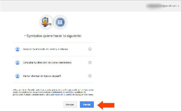 La cuenta de Google o de la red social utilizada pedirá permiso para que Symbaloo pueda acceder utilizando cierta información. Pulsar en el botón "PERMITIR"